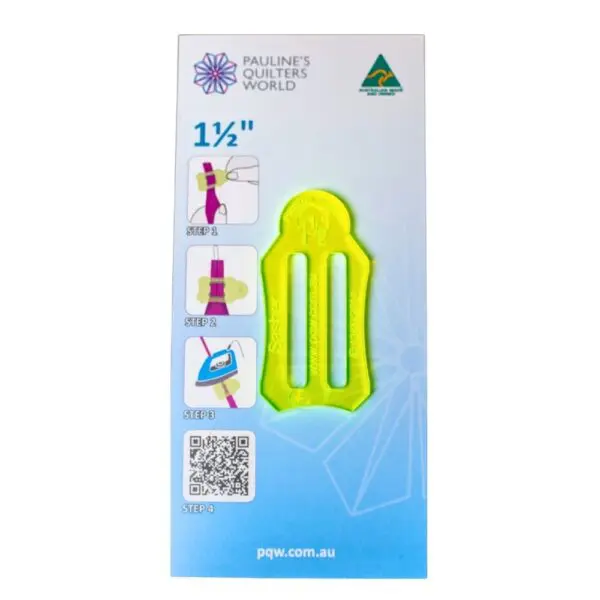 The1 1/2″ Sasher™ Tool is PQW’s version of a bias maker. It allows you to quickly and easily fold bias or straight grain fabric strips in half (raw edges together), or perform a perfect bias fold using just the Sasher Tool and an iron.