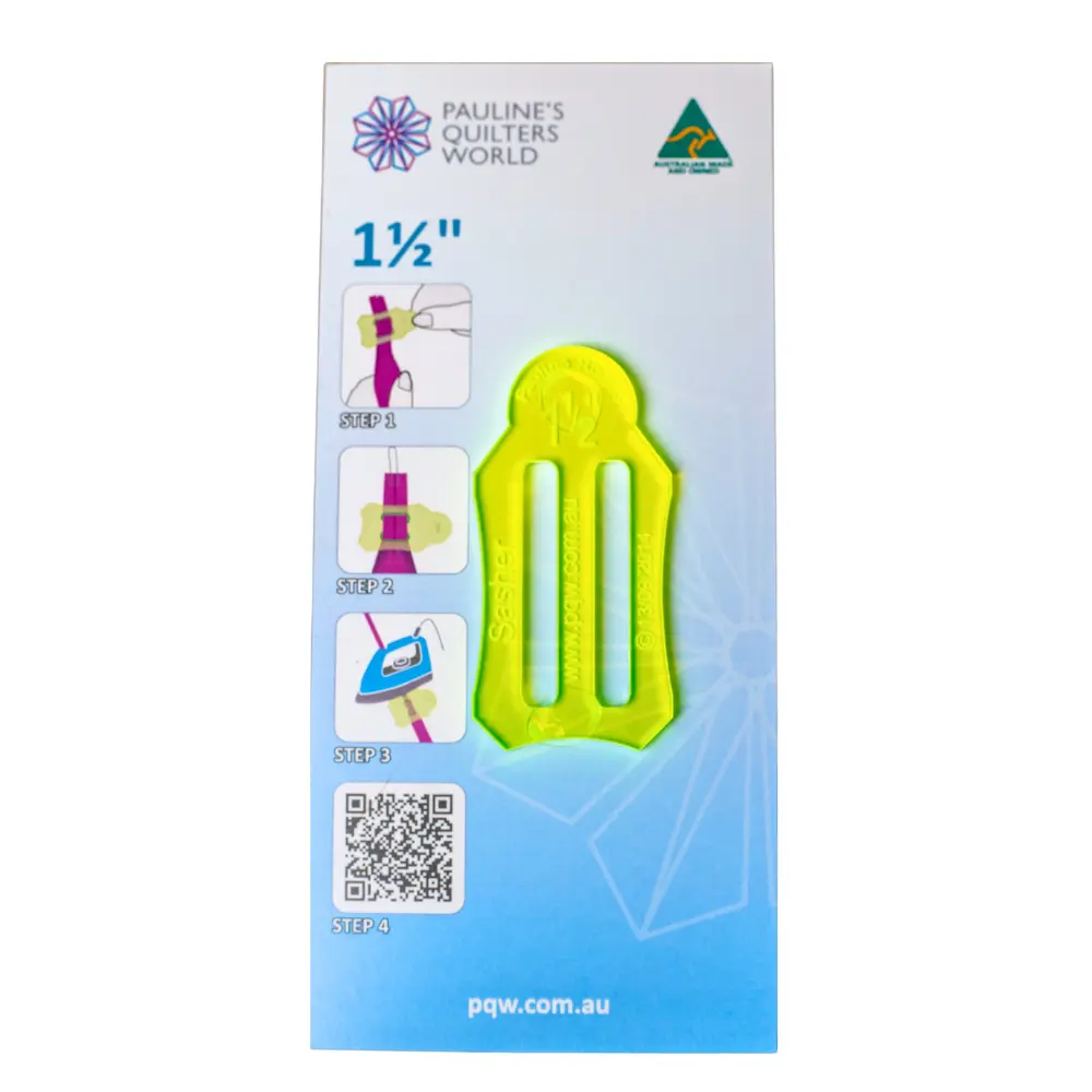 Please note – that the size on the Sasher is the finished size of the folded strip. If you require a 1 1/2″ finished size, cut the fabric 3″ wide and then put through the 1 1/2″ Sasher.