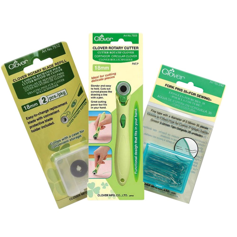 If you struggle with cutting tight curves or managing small pieces of fabric, this is the set for you. The 18mm Rotary Cutter is small and maneuverable, allowing for perfect control around templates and shapes. Paired with our Fork Pins to anchor your fabric without shifting, you will achieve professional accuracy every time.