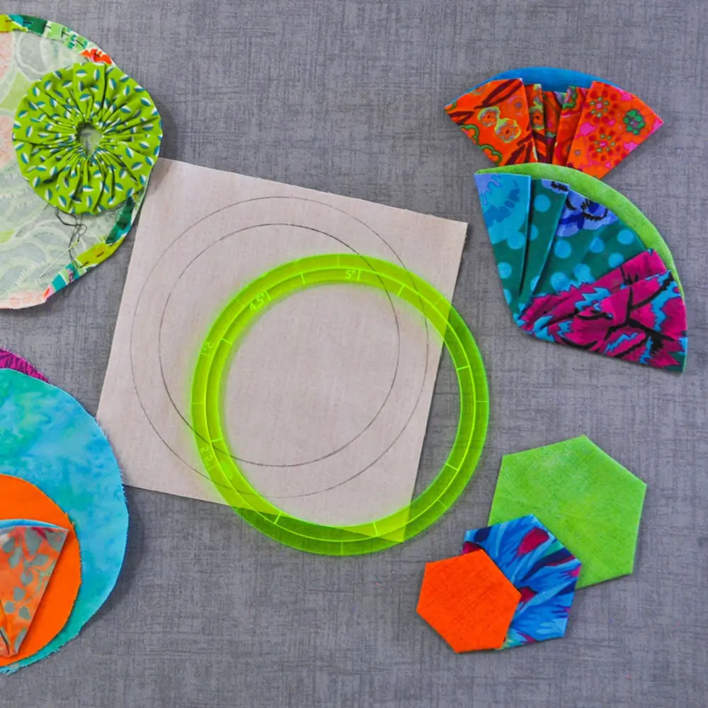 The Circle Set tool can also be used for rotary cut circles (we would recommend having a rotating mat if you are going to do this), and for fussy cut circles for applique.