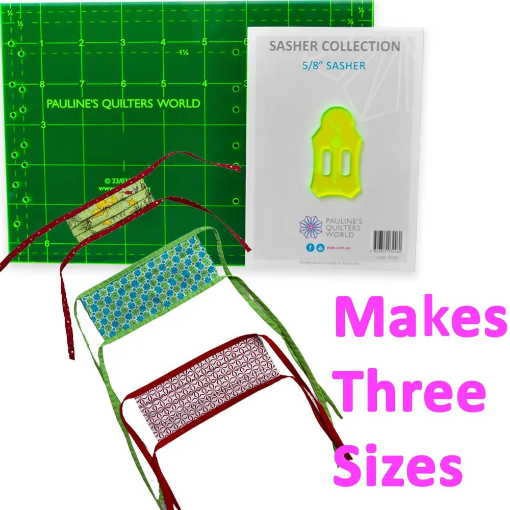 The set includes the Template Ruler which has been designed to make three different sizes – small, medium and large. The small size mask is perfect for younger children, whilst the medium and large sizes are more suitable to teenagers and adults. The 5/8″ Sasher tool is the perfect size for making the ties for the masks.