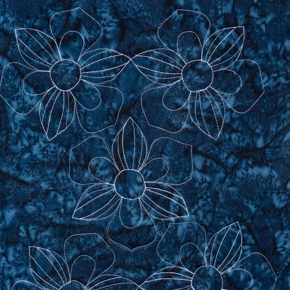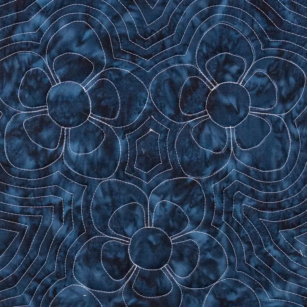 Simply trace the designs onto your fabric in any number of configurations using a fabric marking pencil, then sew on the line with your feed dogs up and an open toe foot, on your domestic sewing machine one block at a time using a sew slip mat to help glide and guide your fabric as you simply sew on the lines.